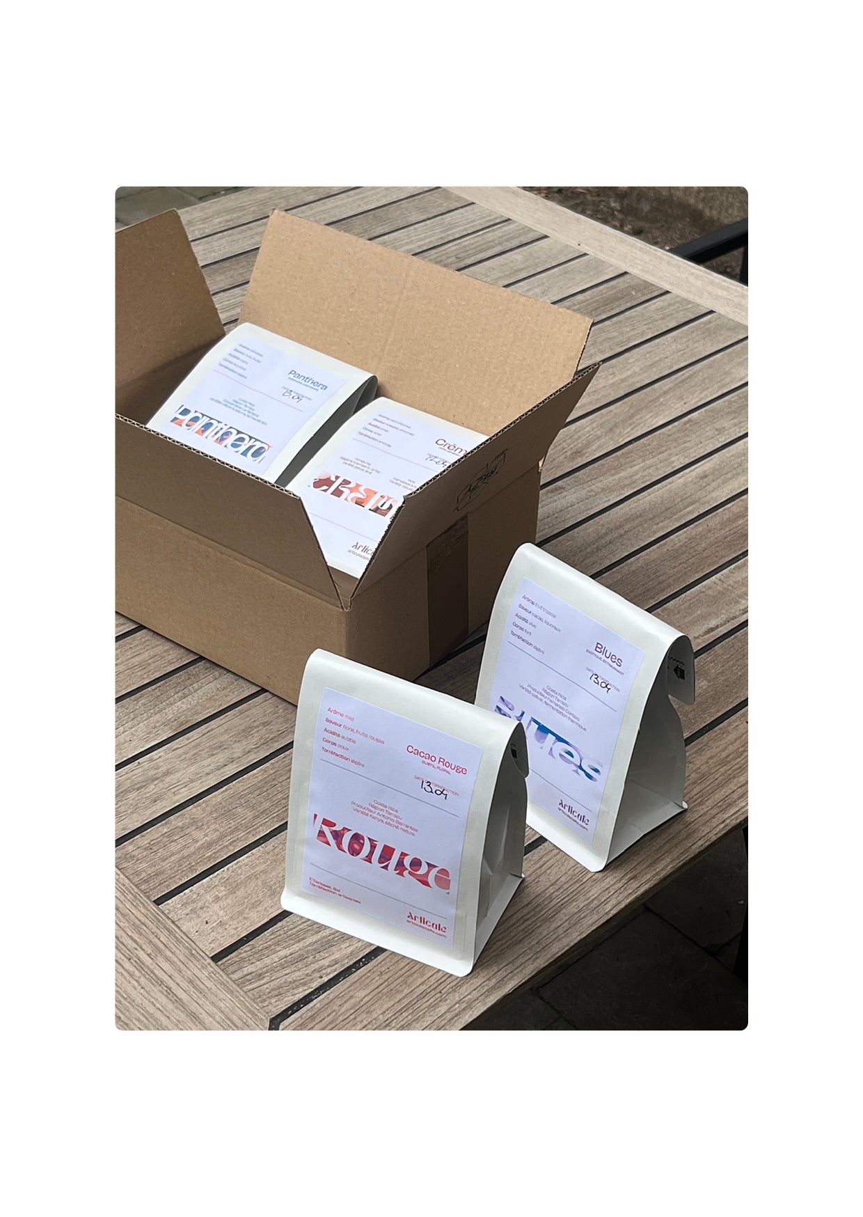 Tous les cafés. Gamme espresso et filtre. Cinq paquets.
